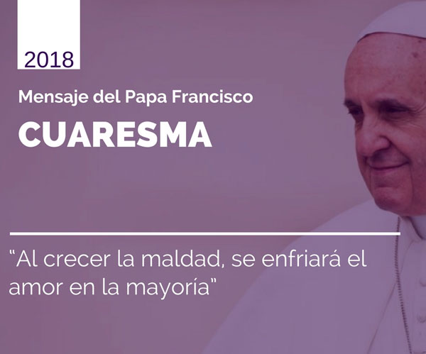 Mensaje del Santo Padre Francisco para la Cuaresma 2018 cuyo tema es : «Al crecer la maldad, se enfriará el amor en la mayoría» (Mt 24,12).